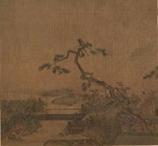 元代畫家張可觀,承襲南宋馬遠(yuǎn)一派畫風(fēng),作品以簡馭繁,既有華美氣質(zhì)又顯得精煉蒼勁。張可觀抓住近景特寫,又讓遠(yuǎn)景被彌散的煙霧遮擋,與天空混為一體,體現(xiàn)出幽深廣遠(yuǎn)的味道。畫面上一位文人在平臺(tái)上臨水賞月,在意境上增添了含蓄之美。