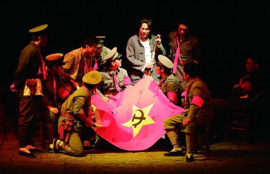 在共和國(guó)的紀(jì)念碑上,有很多為了理想舍生忘死的共產(chǎn)黨員的英名,他們用生命履行“永不叛黨”的入黨誓言。南京市話劇團(tuán)演出的《雨花臺(tái)》表現(xiàn)的是極端情境下的舍生取義。1927年蔣介石發(fā)動(dòng)反革命政變,大肆屠殺共產(chǎn)黨員,當(dāng)敵人的“自白書”擺在面前,保持對(duì)黨的忠誠(chéng)就等于親手簽署了自己的死亡令。惲代英、許包野、施滉、冷少農(nóng)、袁咨桐等共產(chǎn)黨員被關(guān)押,遭毒打,但是他們寧可壯烈地死,決不茍且地生。劇中,中共江蘇省委書記、曾經(jīng)獲得德國(guó)奧地利兩國(guó)哲學(xué)博士的許包野就義前對(duì)中共河北省委書記、曾經(jīng)的莫斯科中山大學(xué)教授施滉說:“你我付出一人之生命,或許就將新中國(guó)的誕生提前了一個(gè)小時(shí),萬千同仁付出生命,則理想之國(guó),近在咫尺。這美好的一天,就留給后人吧!”這些英烈用他們的血肉之軀,譜寫了感天動(dòng)地的正氣歌,表現(xiàn)出與日月同輝、與山河同在的精神品質(zhì)。