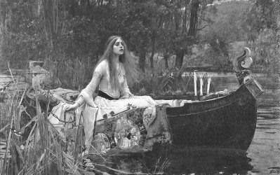 拉斐爾前派畫家沃特豪斯也畫過相同題材的作品,他描繪了夏洛特小姐不顧一切乘著小船前往城堡卡默洛特——一個貴族和騎士盤踞的地方——的場景,她要去尋找她仰慕的蘭斯洛特騎士,可是最終逃不開詛咒的她在自己的歌聲中去世。沃特豪斯的《夏洛特小姐》一經面世便驚動了當時的藝術界,夏洛特小姐那優美的姿態、漂亮的面孔和畫中描繪的醉人的夢境無不被人稱贊歌頌。