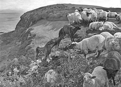 米萊斯的畫作總是透出一種濃厚的傷感情緒,這也許與畫家對不幸之人的同情和對現實感到無望有關,而這種情緒常常被畫家寄寓在少女身上。除了《奧菲利亞》,這種傷感在其最著名的作品《盲女》中體現得極其深刻。畫中描繪了兩個流浪的乞丐姐妹,其中一位是盲人音樂家,她們在一場暴風雨過后在路邊無奈休息。盲女把手風琴放在腿上,感受著臉上陽光的溫暖,右手則摸索著一朵白色的花,為了嗅到它的芳香,她傾斜著頭,努力去發現,努力去擷取一丁點兒鄉村的氣息。妹妹則保護著她的眼睛不受陽光的照射,看著剛剛出現的雙彩虹,而盲女卻看不見,這更加深了她處境的辛酸。一只玳瑁蝴蝶停在盲女的披肩上,暗示她一動不動,她脖子上掛著的牌子寫著“可憐的盲人”。