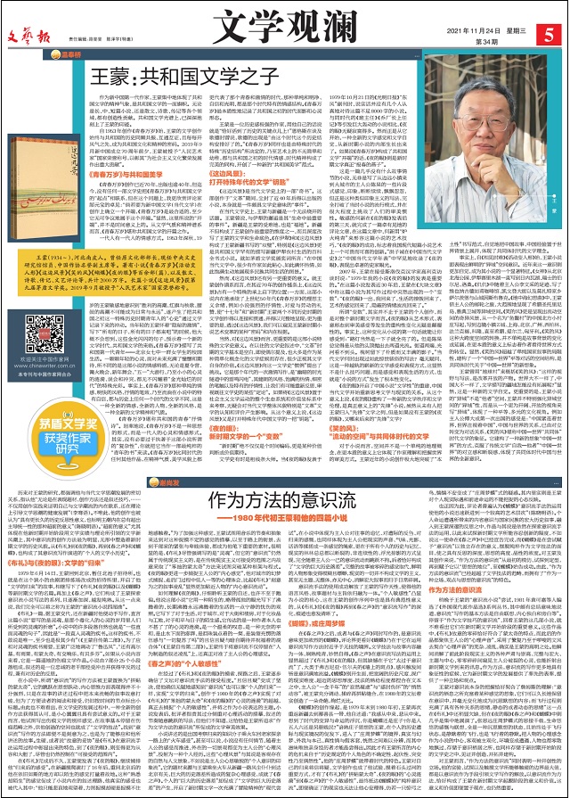 (本文發于中國作家網在《文藝報》所開設的“文學觀瀾”專刊,“茅盾文學獎獲獎作家研究”2021年11月24日第5版。)