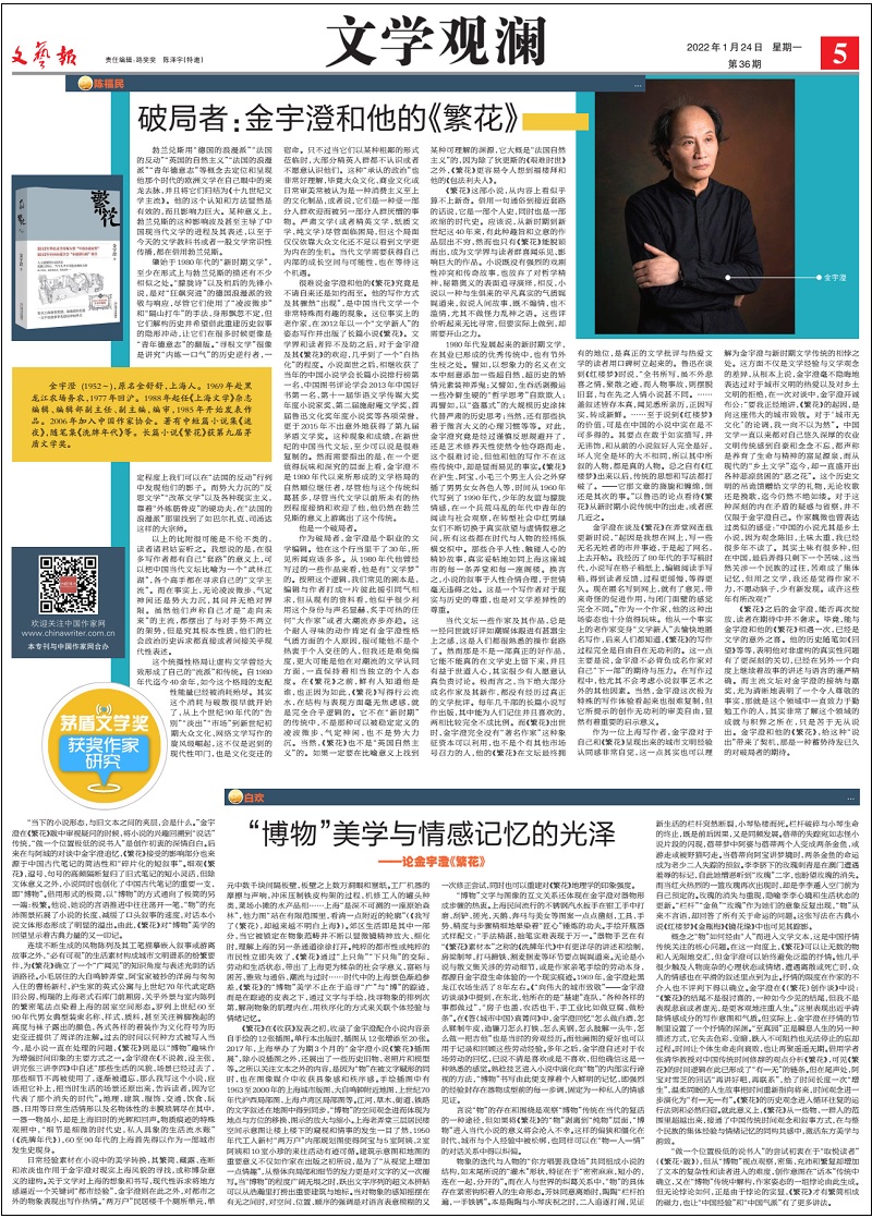 (本文發于中國作家網在《文藝報》所開設的“文學觀瀾”專刊,“茅盾文學獎獲獎作家研究”2022年1月24日第5版。)