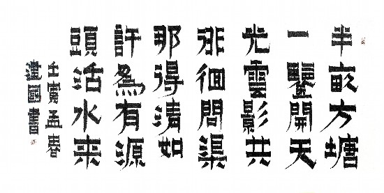 應該是十年前,我在網上欣賞書法作品時,發現了金農的漆書作品,被筆畫方正,棱角分明,橫畫粗重而豎畫纖細、墨色烏黑光亮,猶如漆成的書寫特點深深震撼并吸引了,當時我就迫不及待地進行了一段時間的臨摹,雖然略有形似,但由于我的書法功力尚淺,難得神韻,練習了一段時間后就放棄了,繼續臨習楷書和行草,后來又臨習隸書。