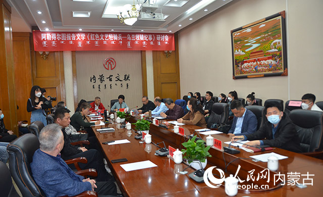 5月9日上午,由內蒙古文聯、內蒙古人民出版社聯合主辦,內蒙古作家協會承辦的阿勒得爾圖報告文學《紅色文藝輕騎兵—烏蘭牧騎紀事》研討會以線上線下相結合的形式在內蒙古文聯召開。