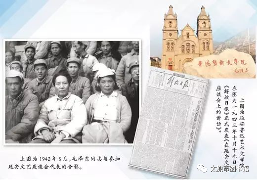 1942年5月2日至23日,毛澤東在延安主持召開文藝座談會(huì)并發(fā)表了重要講話,講話內(nèi)容經(jīng)過(guò)修改完善后發(fā)表在《解放日?qǐng)?bào)》上,被稱為《在延安文藝座談會(huì)上的講話》,后又收錄在《毛澤東選集》第三卷。