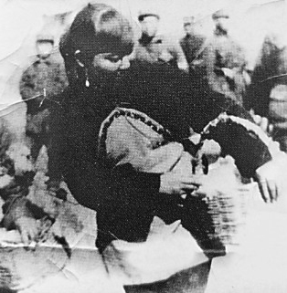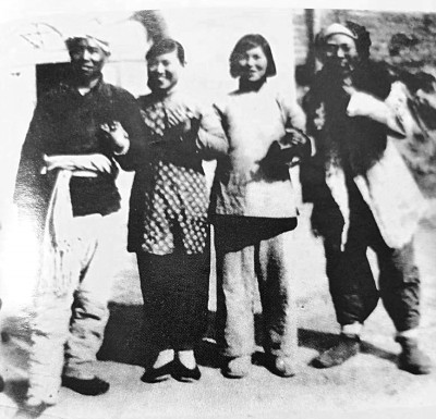 1943年延安棗園文工團演出秧歌劇《動員起來》演員化裝照。圖片為資料照片