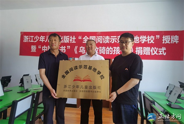 5月26日下午,北方新報社員工帶著滿滿的愛心,經過5個多小時的長途跋涉,來到錫林郭勒盟蘇尼特右旗第三小學,將浙江少年兒童出版社捐贈的400本精美圖書整齊地擺放到學校圖書室,其中100本是由知名作家鮑爾吉·原野創作的《烏蘭牧騎的孩子》,另外300本是精心挑選的少兒讀物。同時,浙江少年兒童出版社在該學校成立“全國閱讀示范基地學校”,以后每年都會為學校捐贈出版社出版的少兒圖書。