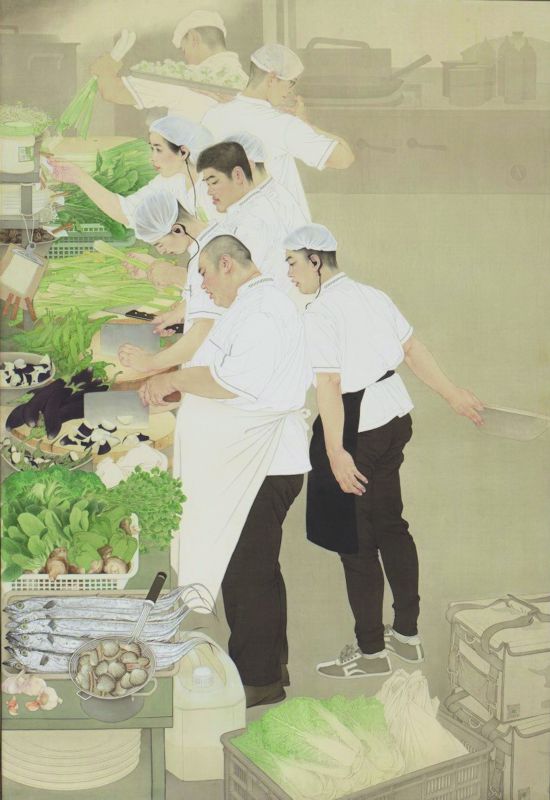 陳治、武欣《零點》《兒女情長》《尖峰食刻》,王珂《都是熱血兒郎》,李玉旺《使命》,孫震生《雪域歡歌》等,這些在近幾屆全國美展中涌現出來的深受好評的中國畫之所以能夠打動人,還在于作品所描寫的城市生活、所塑造的青年人既充滿了青春活力,更表現了經濟社會中青年一代應有的社會擔當。《零點》在日本巡展時被高度關注,這件作品所繪寫的中國城市青年生活是如此現代、時尚,而又如此深情和溫馨,刷新了國外民眾對中國現代生活的認知。畫面對工筆人物形象塑造的語言探索,也因承載有溫度的中國現實生活而增強了藝術感染力。事實上,新時代中國畫最惹人注目的領域已從水墨寫意畫轉向重彩工筆畫。當代形態的重彩工筆畫對再現深度的發掘取得了前所未有的成就,它不僅汲取了中國古代壁畫養分,而且借鑒了歐洲早期文藝復興坦培拉畫法和簡約立體的造型語言。而這種語言的探索正是中國快速發展、提升民眾現代生活品質的一種審美折射,是新興的現代城市視覺文化在工筆畫領域的審美新創造。工筆畫甚至比寫意畫更具備后現代藝術的觀念性,具象描繪卻充滿了象征和隱喻,這使得工筆畫從藝術語言到表現觀念進行了多層面、多維度的轉換與拓展,從而賦予當代中國畫以多種文化藝術的兼容性。