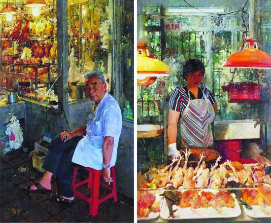 從李節平《小夫妻》、李智華《老廣東,小生活》到陸慶龍《格桑花開》、于小冬《教室的陽光》等油畫作品,從柳青《成果》到王比《好消息》等雕塑作品,從張玉惠《織情敘意》到頡元芳《遠方》等漆畫、水彩畫作品,從彭偉《而立之年》到曹丹《陽光下的大橋澆筑工》、沙永匯《金秋時代》等版畫作品,在近幾屆全國美展中嶄露頭角的美術作品,大多以描繪普通民眾的日常來展現民生變遷,通過美術家的描繪呈現了一種質樸的雋永。《小夫妻》只是打工回鄉終于蓋起了自己小巢的故事;《老廣東,小生活》在最常見的農貿集市攤販中揭示了“小生活”的滋味;《教室的陽光》所描寫的邊遠鄉村那照進教室的一縷陽光揭示了鄉村教育的改善對孩子們童年的溫暖。這些作品沒有說教,甚至也不訴諸外在的形式探索,卻以美術家對樸素生活的體味與發現來形成藝術感染力。或者說,蘊含在這些作品中的感人的要素,不是視覺形式的凸顯,而是生活的真切感所形成的一種純粹而樸素的美。表現城市農貿集市的《老廣東,小生活》《成果》等作品中,農民或個體戶形象構成了現代城市文化的鄉村記憶,蔬果與家禽構成的菜肴味蕾同樣是滿足現代城市生活的重要組成,因而,這些美術作品也是真實揭示現實民生最接地氣的一種表現形態。