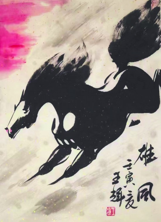 與王輝談畫馬是一大幸事。他是在山西那片厚土中成長起來的畫家,得天獨厚的文化環境,讓他逐漸積累了底蘊。他十幾歲就喜歡有古代民族英雄騎馬的小人書,喜歡畫那些英雄們騎上駿馬,馳騁疆場的颯爽英姿。后來又在許多地方拜師學藝,他2008年結業于中國書法函授學院,2009年又進修于清華美院書畫高研班。尤為值得一提的是,他在王宗甲、喬建峰、胡增福等老師的作品中吸取了豐富的營養。