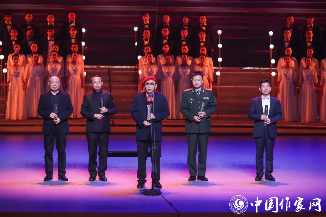阿來和來自大山里的四位小詩人為第八屆魯迅文學獎·詩歌獎獲獎者頒獎