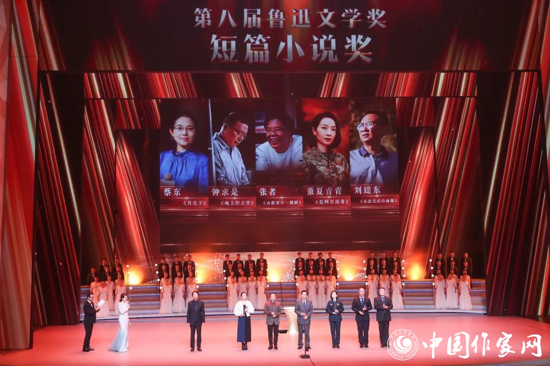第八屆魯迅文學獎·短篇小說獎得主蔡東、鐘求是、董夏青青、張者、責編宗永平代劉建東領獎
