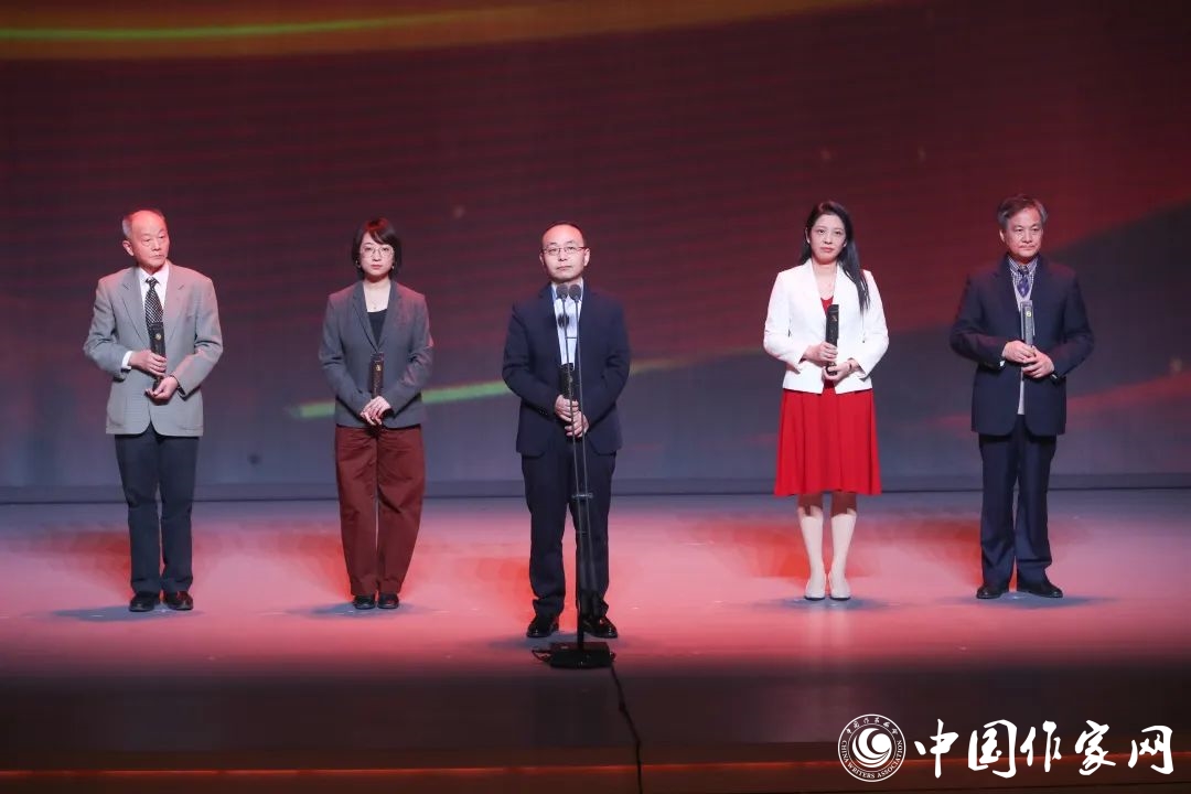 第八屆魯迅文學獎·報告文學獎得主龔盛輝、歐陽黔森、蔣巍、丁曉平、鐘法權(從左到右,下同)