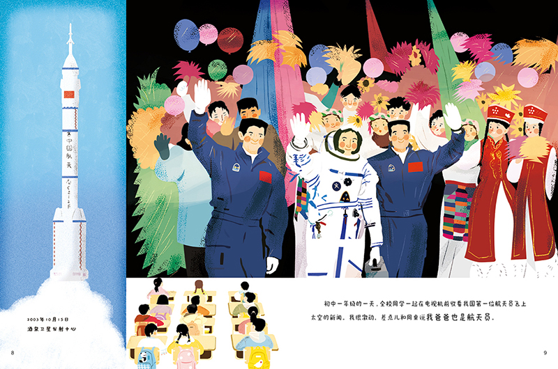 中國作家網:您和鄧清明的女兒鄧滿琪同為90后,在創作繪本時一定很有代入感吧!能談談您當時的創作心態嗎?另外兩本父親系列的繪本里,父親最后都實現了自己的夢想,而《爸爸的秘密》的結尾則是開放式的。如今鄧清明航天員已經圓夢,您一定有很多感慨吧!能分享一下嗎?