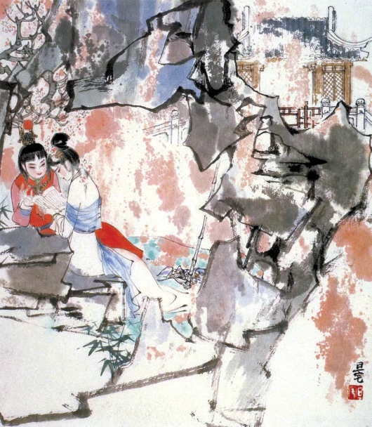 在紅樓畫創(chuàng)作方面,劉旦宅此后接連繪制了年畫《史湘云醉眠芍藥裀》(1958)、《紅樓金釵》(1962);1963年與賀友直先生、林鍇先生合作《曹雪芹生平組畫》;又應魏紹昌先生之邀完成了《紅奴小影錄》(1976)、《夢影釵光集》(1977),后經(jīng)過數(shù)幅重繪出版為《石頭記人物畫》;1978年為社會科學戰(zhàn)線雜志社創(chuàng)作《紅樓夢圖詠月歷》;1979年為河北人民出版社創(chuàng)作《紅樓夢人物十二圖月歷》;1980年完成《紅樓夢著批之圖》;1981年設計的《紅樓夢——金陵十二釵》郵票更被評為當年的“最佳特種郵票”,次年又發(fā)行了《雙玉讀曲》小型張,郵票同時在日本“中國最佳郵票評比”獲得第一名。這些作品一經(jīng)發(fā)行,就得到了專家的高度贊賞以及大眾的熱烈追捧。