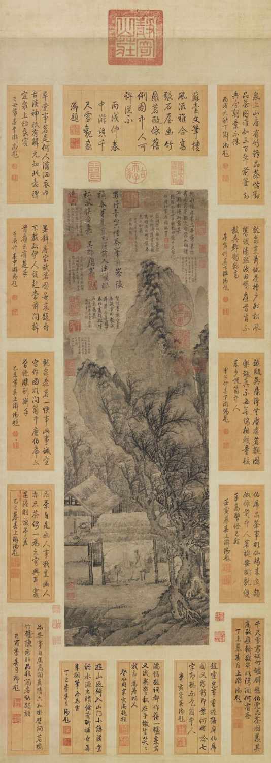 宋代是極講究茶道的時代,上起皇帝,下至士大夫,無不好此。宋徽宗趙佶撰《大觀茶論》,蔡襄撰《茶錄》,黃儒撰《品茶要錄》,一些文人雅士更流行斗茶的生活情趣,宋代斗茶之風極盛。本幅有明代官員、書畫家范允臨(1558~1641年)行書題跋《斗茶歌》。