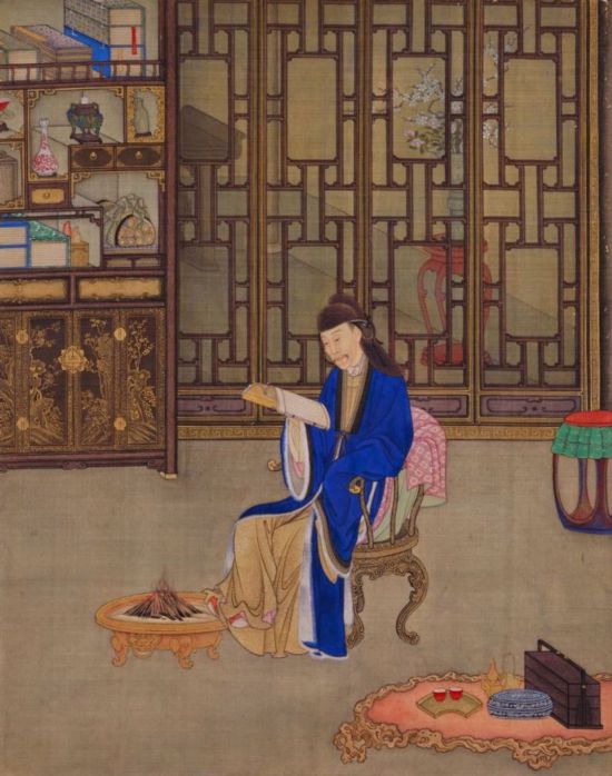 清 胤禛行樂圖冊·圍爐觀書頁