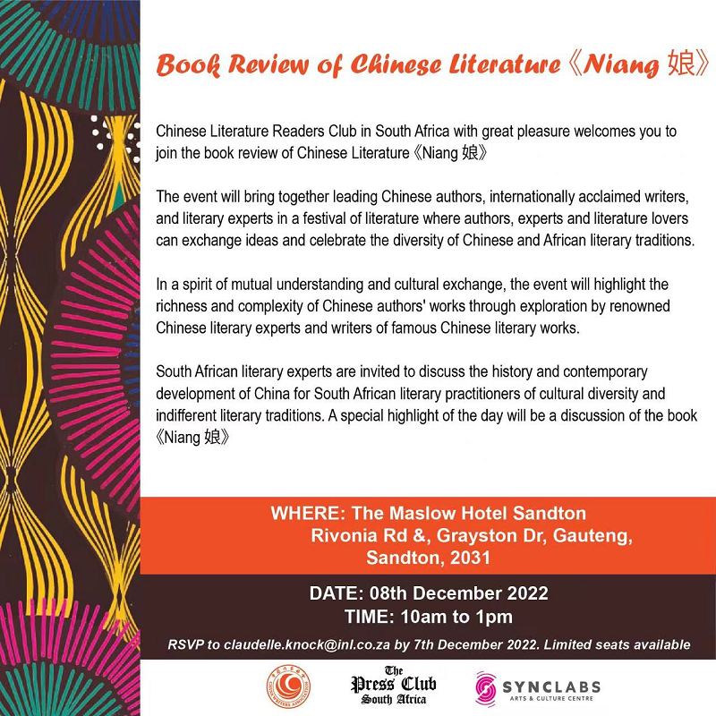 12月8日,南非“中國文學讀者俱樂部”在約翰內斯堡舉辦成立以來的首場活動。活動由中國作家協會指導和支持,由“漢語橋”俱樂部(開普敦站)、南非《星報》聯合組織,以線上線下結合的方式,邀請作家彭學明在線參加,以“母愛的國際語言”為主題,對作品《娘》進行深入解讀和探討。來自南非社會各界人士,包括“漢語橋”俱樂部開普敦站會員、南非作家協會代表、南非《星報》主編、非洲青年企業家協會代表以及南非當地和旅南的中國文學愛好者踴躍參加,活動持續3個多小時,氣氛十分熱烈。