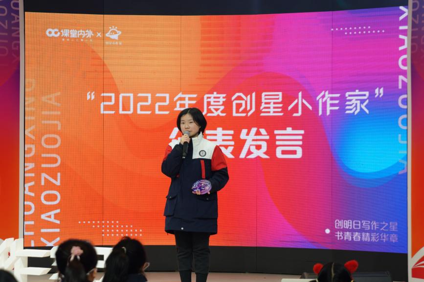 周丹彤作為“2022年度創星小作家”代表發言