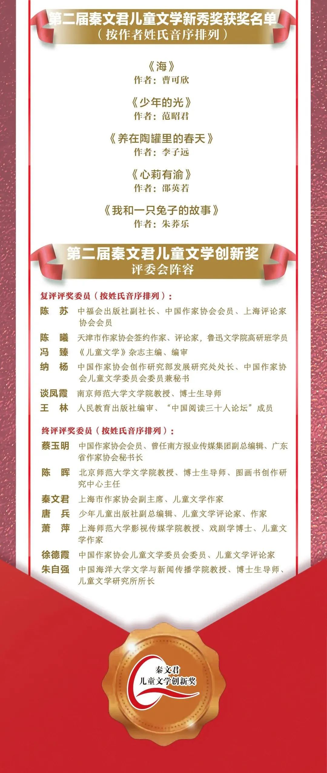 第二屆秦文君兒童文學創新獎頒獎,第三屆正式啟動