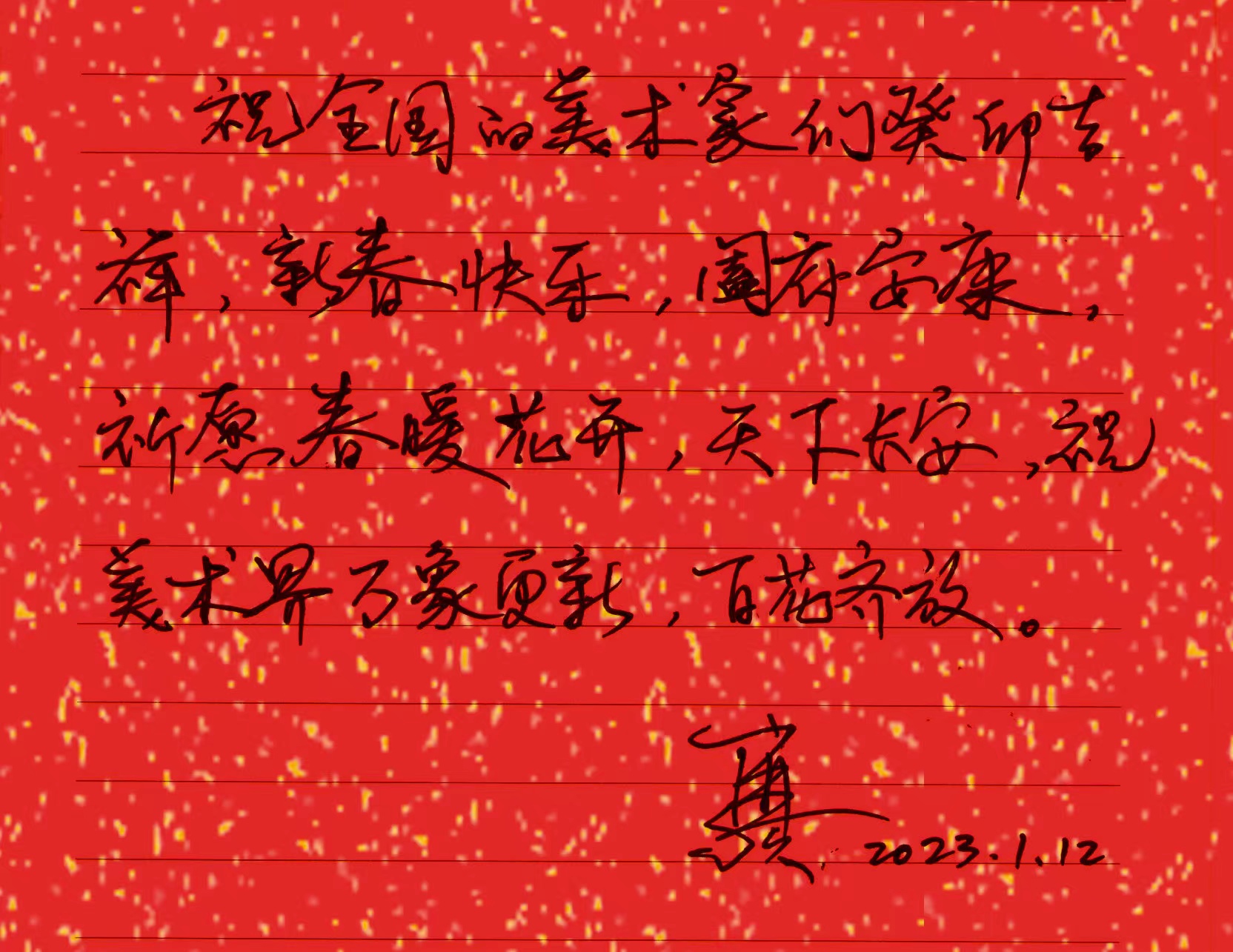 2023年,祝愿全國美術(shù)家,以誠摯的時(shí)代情感、用自己創(chuàng)造的雙手,謳歌時(shí)代、書寫出中國藝術(shù)的精氣神,共同為人民提供更豐富高雅文明、溫暖親民的藝術(shù)精神食糧,共祝愿明天會(huì)更好!