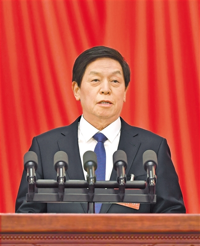受十三屆全國人大常委會委托,栗戰書委員長向大會報告全國人大常委會工作。栗戰書在報告中指出,過去一年,在以習近平同志為核心的黨中央堅強領導下,全國人大常委會認真貫徹黨的十九大、二十大精神,堅持高質量做好立法工作,制定法律5件,修改法律9件,通過有關法律問題和重大問題的決定4件,作出法律解釋1件;堅持高質量做好監督工作,檢查5件法律的實施情況,聽取審議23個監督工作報告,開展專題詢問,進行8項專題調研;堅持高質量做好代表工作,辦理代表議案487件、建議9349件,共有100多人次代表參與常委會、專門委員會、工作委員會的工作;堅持高質量做好外事工作;依法任免國家機關工作人員393人次,圓滿完成十三屆全國人大五次會議確定的任務。