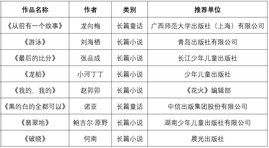 長篇小說、童話提名獎
