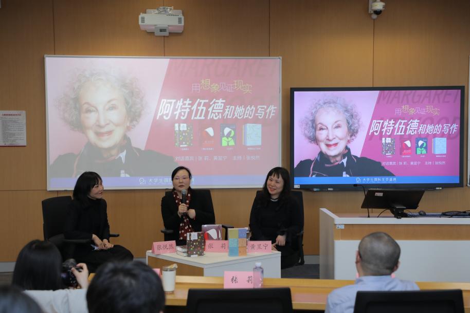 3月31日,由江蘇鳳凰出版傳媒股份有限公司與中國人民大學國際寫作中心聯合主辦的“21大學生國際文學盛典之致敬阿特伍德”在京舉辦。中國人民大學文學院副院長楊慶祥、譯林出版社總編輯袁楠代表主辦方致辭,阿特伍德通過視頻發表了感言。