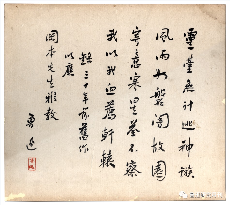 1932年,魯迅贈岡本繁(“自題小像”),北京魯迅博物館藏
