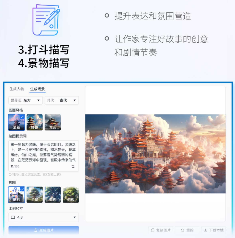 此前試用過“作家助手妙筆版”的閱文作家“咸魚軍頭”認為:“‘作家助手妙筆版’的場景描述功能,AI詞匯量更大,場景描述更豐富,但它無法把控網(wǎng)文的節(jié)奏、讀者的爽點……我認為只要找到使用方法,它是可以極大程度提升作家的寫作效率的,現(xiàn)在我就把妙筆作為一個素材、詞匯量的輔助工具,讓我避免在描寫場景的時候因為特定的形容詞而卡殼。”