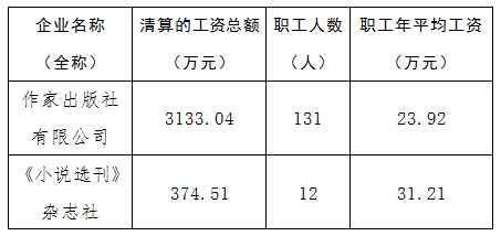 2022年中國作家協會所監管企業工資總額信息披露