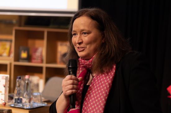 圖為匈文版《吃瓜時(shí)代的兒女們》譯者宗博莉·克拉拉主持讀書(shū)分享會(huì)