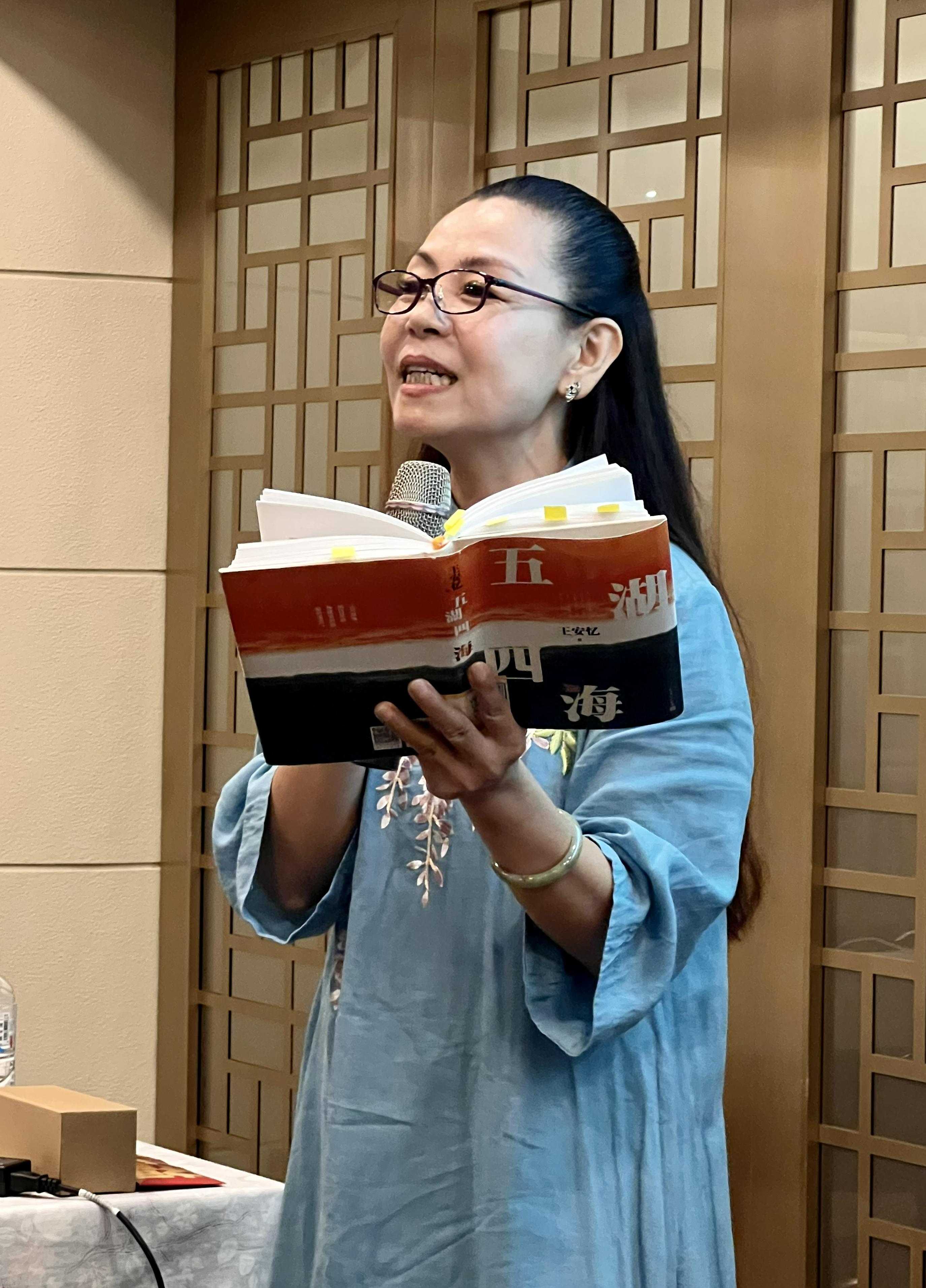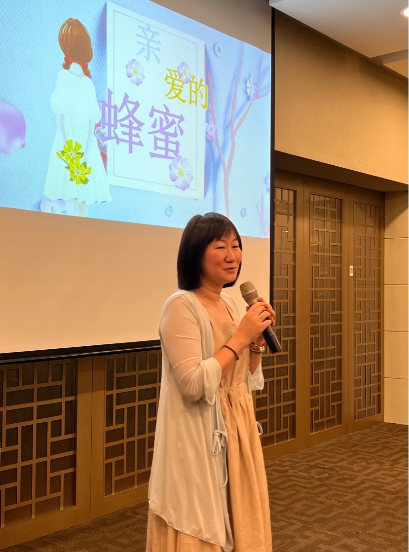 資深華文老師周亮對笛安作品《親愛的蜂蜜》做了導讀。她介紹說,這部以婚戀題材為主的長篇小說,側重講述了兩個成年人與一個孩子的愛與羈絆。名為蜂蜜的小女孩與熊漠北的“忘年交”,推動著一雙各自有過離異史的男女開始拉近,而雙方幾乎失之交臂的愛情,則在“新冠”疫情中失而復得。小說通過熊漠北的成長經歷,記錄了一個家庭經歷改革開放、計劃生育、下海、分居等等重大時刻,描摹出一代人的成長史。導讀條理分明、細致入微,對作品中人物情感的深入分析令讀者們深感共情和共鳴。她認為,小說重點探討了當代人想愛卻不敢愛的問題。女主人公崔蓮一與熊漠北相互考量,進退持守,既要考慮過去的感情經驗所造成的傷害,還須面對孩子的養育責任。這些起起落落的心路歷程,似乎就是“90后”、“00后”們正在演繹的生活。