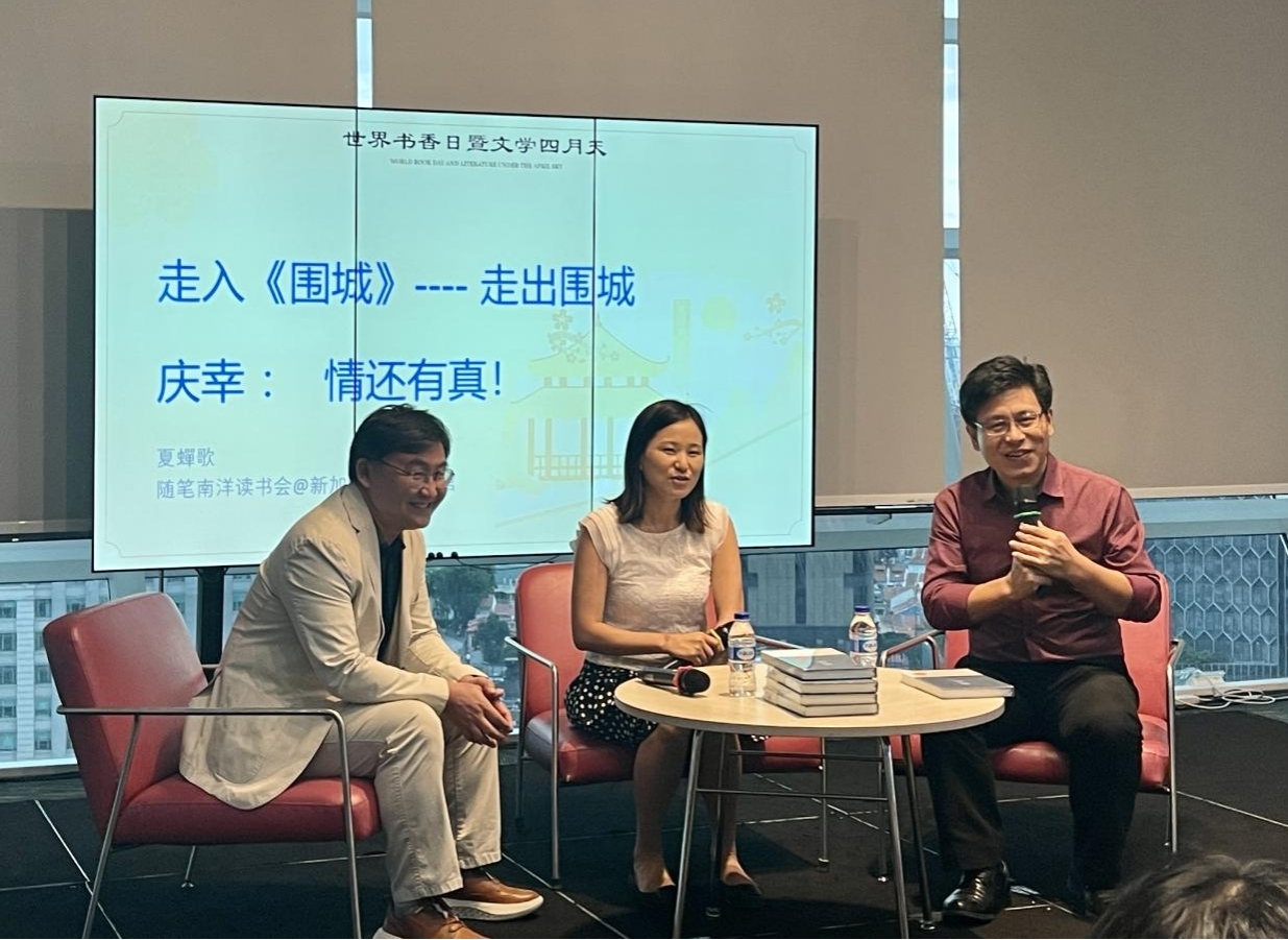 4月下旬,作為新加坡“世界書香日”系列讀書活動之一,新加坡讀者俱樂部特意將錢鐘書先生的經典長篇小說《圍城》與徐坤的《神圣婚姻》做了聯合導讀,引發了讀者的熱烈討論。導讀活動由夏蟬歌、方虹主持,對這兩部作品進行了有趣的對比:兩部作品源自不同時代,其中《圍城》的故事起始于上海,主人公后到內地大學執教;《神圣婚姻》的故事則發生在北京,以鄉村支教的選擇作為收尾。兩部小說都有“海歸”知識分子的形象,都寫出了年輕人的痛苦和迷茫,掙扎和選擇。但方鴻漸發現婚姻就像《圍城》,人生也是。而徐坤筆下的主人公卻選擇相信婚姻,繼續找尋愛情與婚姻的新可能。