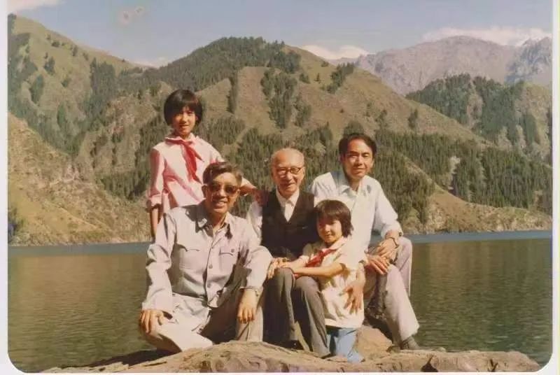 洪汛濤1984年夏,左起:三位上海作家洪汛濤、陳伯吹、張錦江應(yīng)邀訪問新疆,攝于天池。