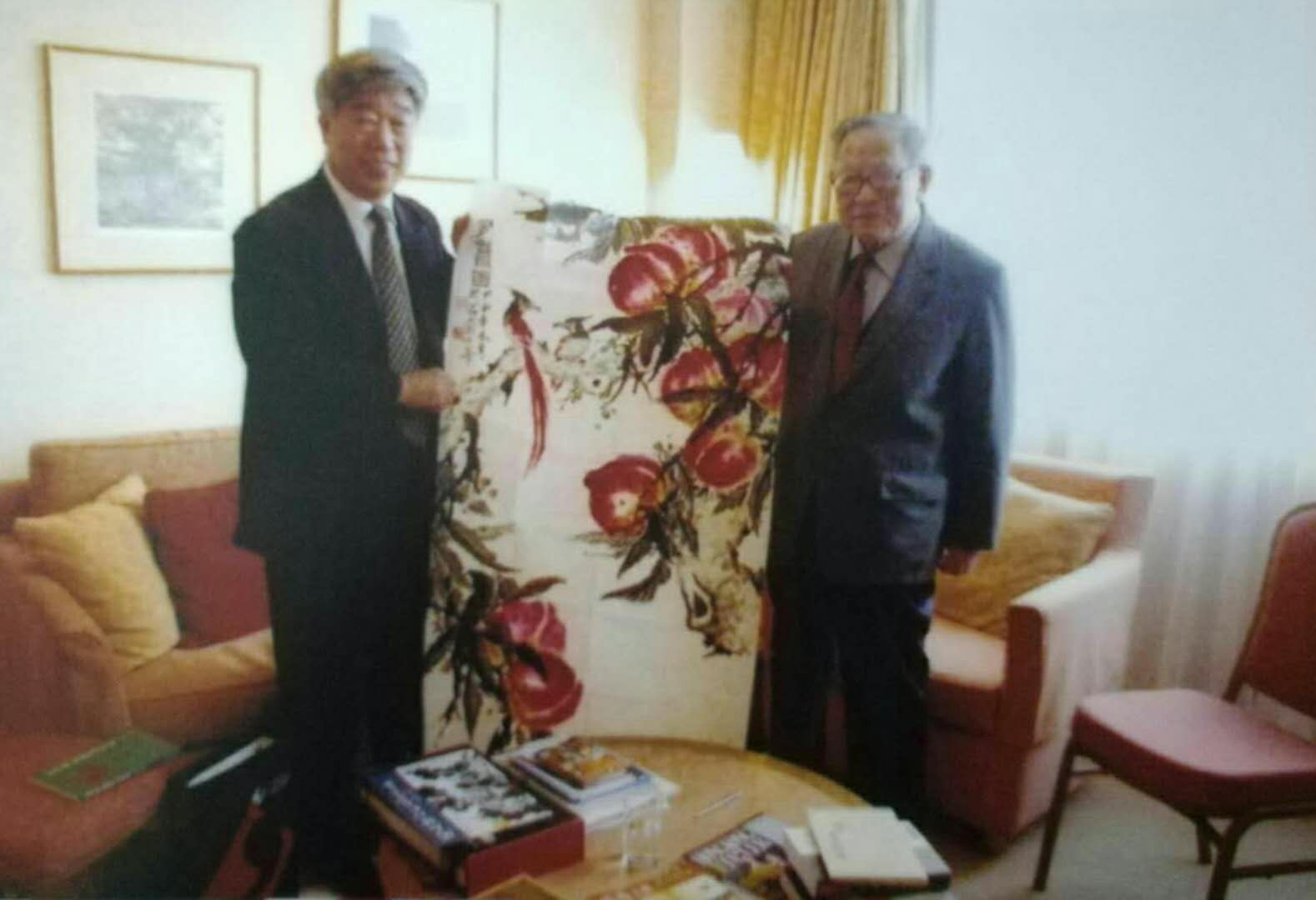 2004年11月23日上午,中國現代文學館李榮勝、劉屏、王夢晨一行三人,在香港天地圖書公司總經理孫立川先生安排下,在香港港青酒店815房拜訪了梁羽生夫婦。在交談中,中國現代文學館表達意愿,希望永久收藏梁羽生先生的文獻資料,并設立“梁羽生文庫”。為了這次會面,文學館特地請花鳥畫家閆品女士創作了一幅有九顆大桃的中國畫《多壽圖》,祝愿梁先生福壽綿長。梁先生很喜歡此件禮物,對文學館的誠意表示感謝。通過交談,梁羽生先生親身感受到中國現代文學館對海外作家的尊重及對征集自己文學資料的重視,并對文學館有了進一步的認識與了解。梁先生當即表示愿意將自己在悉尼家中的珍貴文獻資料捐贈中國現代文學館。