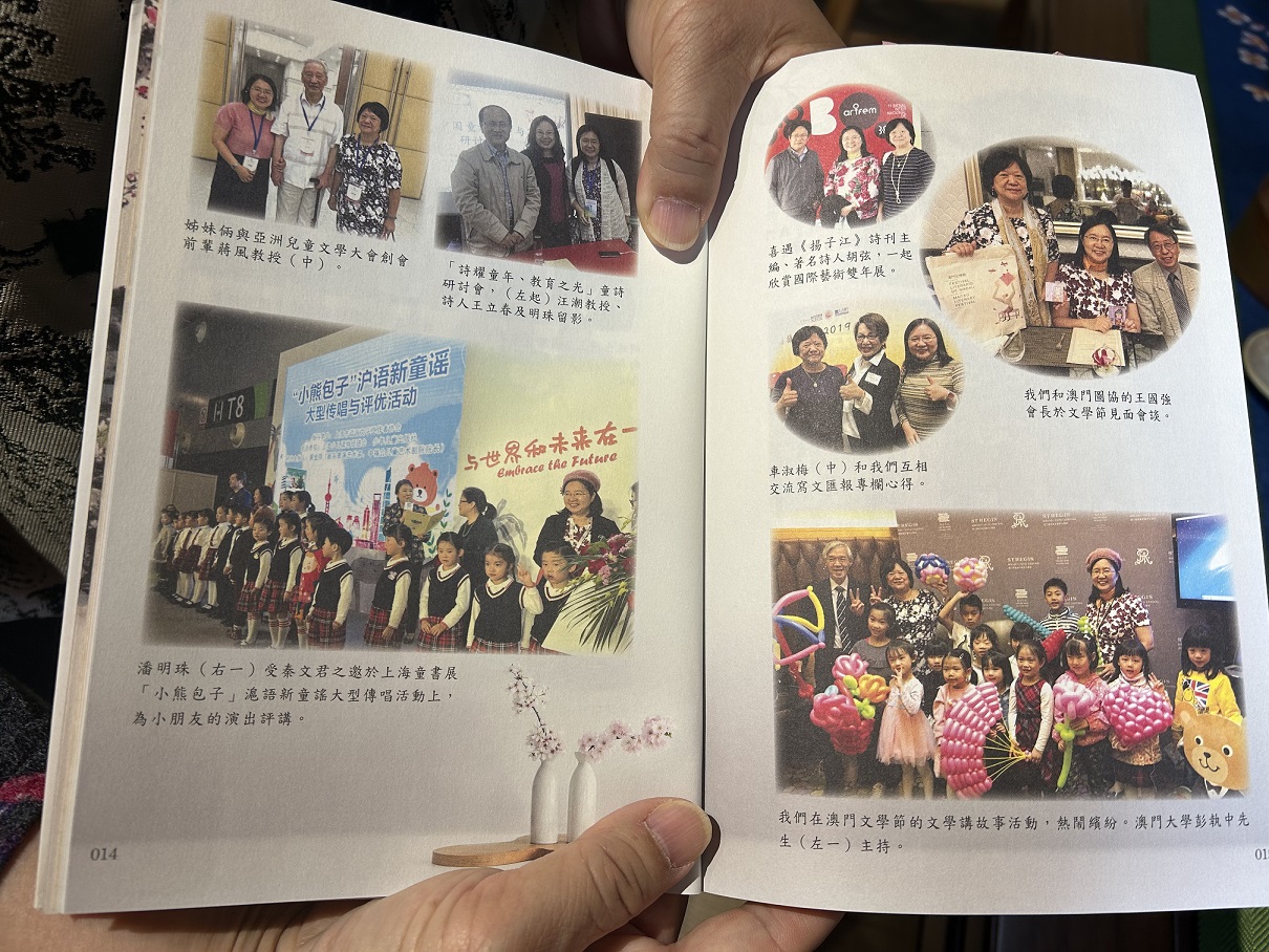 “我今天特意穿了‘新中式’衣服,因?yàn)橐獊磉@個(gè)歷史悠久的建筑”,香港作家聯(lián)會(huì)理事、香港特區(qū)公共圖書館藝術(shù)顧問、兒童文學(xué)作家潘明珠站在有著700年歷史的宏恩觀、如今的北京中軸線博物館觀書殿中,笑意盈盈地對記者說道。她的手上捧著自己最新出版的童書以及香港兒童文學(xué)活動(dòng)的文創(chuàng)。今年春天,中國作協(xié)舉辦的港澳作家回家活動(dòng)上,我們有機(jī)會(huì)與潘明珠,香港女作家協(xié)會(huì)主席、香港兒童文學(xué)聯(lián)會(huì)會(huì)長、作家、編劇周蜜蜜,以及澳門筆會(huì)常務(wù)副會(huì)長、澳門文化界聯(lián)合總會(huì)顧問湯梅笑一起,聊聊港澳兒童文學(xué)的歷史傳承、發(fā)展變化和未來方向等議題。