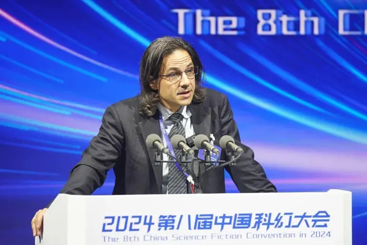 西班牙漢學家夏海明在致辭中表示,他與中國結緣始于對漢語言的熱愛,在他看來這一文字體系有著獨特的文化魅力。在過去的幾年里,他有幸參與了許多中國與西方科幻文化的交流與傳播,這是一段充滿激情與創意的旅程。他衷心希望,通過大家的努力能夠讓科幻文化在中西方之間搭起一座橋梁,讓更多的人能夠共同探索未來的無限可能性。相信這將是一場向全世界講述人類今日與未來的精彩盛會。