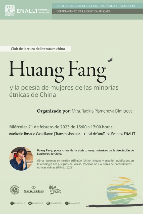 近期,由中國作家協會外聯部指導,墨西哥“中國文學讀者俱樂部”、中國圖書進出口(集團)有限公司與墨西哥國立自治大學共同舉辦的“共賞黃昏——《落霞重重》少數民族作家詩歌分享會” 在該校成功舉辦。壯族女作家、詩人黃芳,墨西哥國立自治大學語言、語言學和翻譯系主任瑪麗亞·德爾·卡門·孔蒂約赫·埃斯孔特里亞博士,中文系教授拉嫡娜,譯者蘇珊娜·鮑蒂斯塔以及墨西哥國立自治大學中文系師生出席了此次活動。埃斯孔特里亞博士為本次活動致辭,并對黃芳首次訪問學校表示熱烈歡迎。