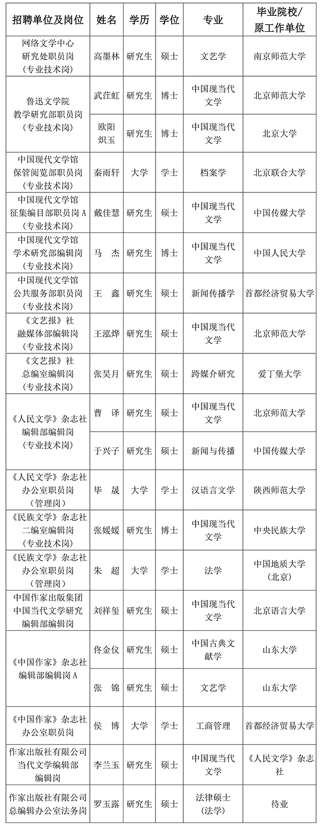 2024年度中國作協(xié)所屬單位擬聘人員公示
