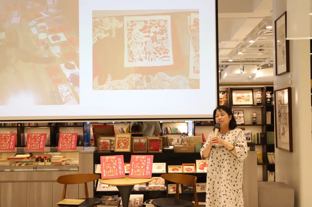 在作者和主持人瑩瑩老師的幫助下,孩子們發揮奇思妙想,用靈巧的小手將自己喜歡的事物,剪成一個個充滿童趣、獨一無二的作品,展現了一個個精彩紛呈的童話世界。劉雪純現場剪了花朵、小貓等剪紙,送給孩子們作為母親節的禮物。
