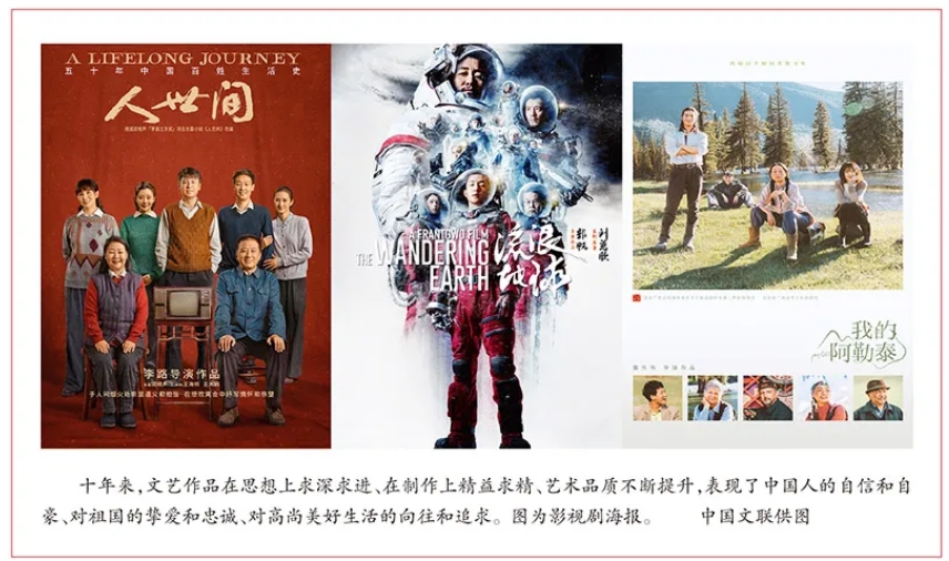 這是主旋律文藝作品在思想上求深求進、在制作上精益求精、藝術品質(zhì)不斷提升、表現(xiàn)亮眼的十年。電視劇《覺醒年代》召喚追求真理、燃燒理想的澎湃歲月,《山海情》表現(xiàn)山海相連、守望相助的社會主義制度優(yōu)越性,《人世間》對工人階級精神風貌進行了史詩性的開掘,《大江大河》再現(xiàn)改革開放的壯闊歷史,《我的阿勒泰》呈現(xiàn)了綠草如茵、山河斑斕、人間有情、民族相親的北疆大地……在一部部文藝作品中,人們從生命的深處領會到把我們緊緊團結和凝聚在一起的信念:作為中國人的自信和自豪,對祖國的摯愛和忠誠,對高尚美好生活的向往和追求,這是我們共同的家園,是我們共同奔赴的遠方。樂舞、吟詠和歌唱,辭章和故事、圖像和影像,新時代的中國人從多姿多彩的文藝作品中分享共同的情感、共同的價值觀。培根鑄魂、啟智潤心,弘揚中華文明以詩教人、以文化人的傳統(tǒng),培育和倡導全體中國人民共同的價值追求和精神認同。這正是新時代文藝根本的社會責任之所在。