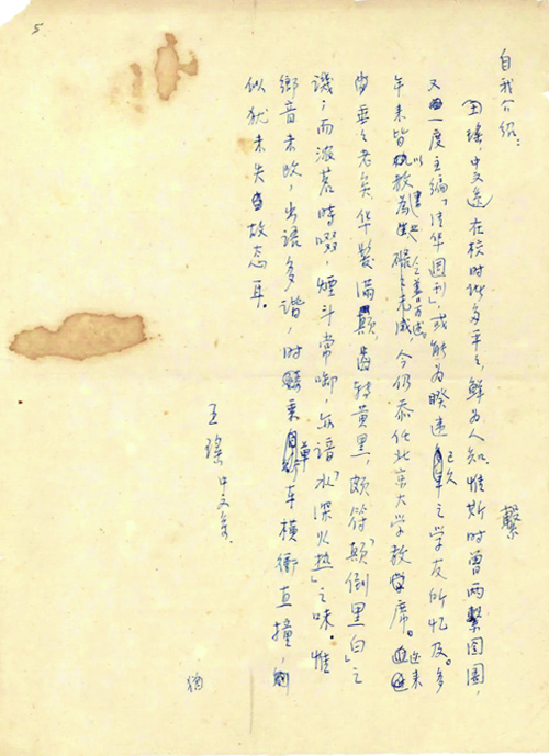 王瑤的自我介紹手稿(1987),刊于《為清華十級(jí)(1934-1938-1988)紀(jì)念刊》