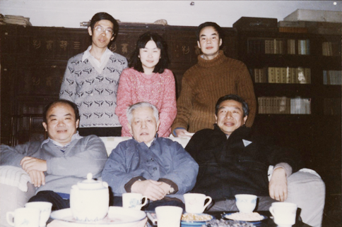 王瑤和學(xué)生們的合影:前排左起依次為錢理群、王瑤、吳福輝,后排左起依次為陳平原、張玫珊、溫儒敏