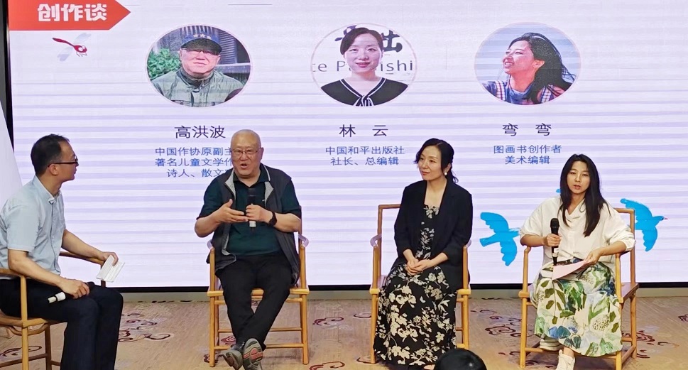 “我們相信,好的童謠、兒歌就如春天的種子,落入孩子的心田,會生根、發(fā)芽,會成為孩子一生最美好的記憶?!痹凇靶柼柾{繪本”創(chuàng)作談時,中國和平出版社社長林云講述了和平社的出版理念和選題策劃方向,她講道:“作家高洪波先生聯(lián)合繪畫風格溫暖、靈動、多元的彎彎、馬鵬浩等青年畫家、小畫家們,以及我們的編輯團隊,不斷討論、修改、完善,歷經三四年的時間,‘小問號童謠繪本’才得以在今天與大家見面。希望孩子們能在閱讀這套繪本中感受到童謠兒歌的音韻之美,體會到大千世界的豐富多彩。”