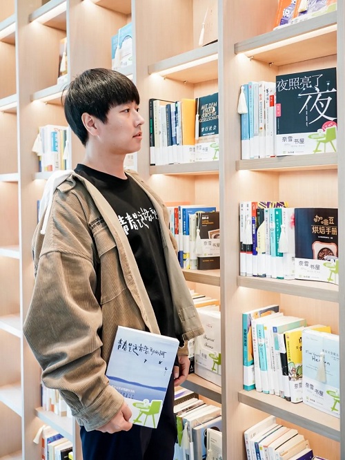 一列綠皮火車旁,大大的包頭耳機掛在脖子外寬寬大大的衛衣帽子下,原地站住不動的海葵,一直在低著頭看手機等我。不知何時燙過的頭發讓蓬松的劉海將他的眼睛擋住幾乎看不見。
