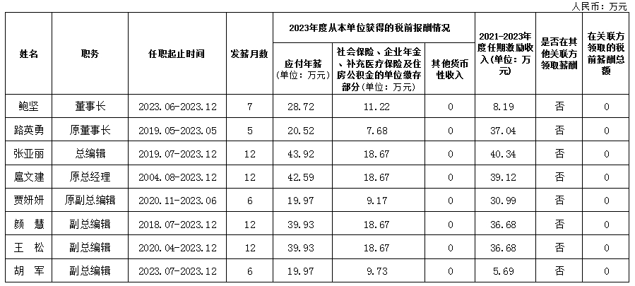 作家出版社有限公司企業負責人2023年度薪酬情況