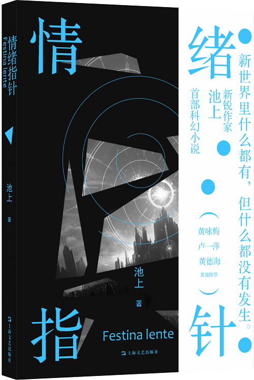 《情緒指針》是池上首部長篇科幻小說,科技發(fā)展到了超前高度的未來,出現(xiàn)了名為“大災(zāi)變”的集體自殺事件,勒彌由此創(chuàng)建了基遍國。為避免人類的負(fù)面情感讓文明重蹈覆轍,基遍取消了家庭這種最基本的社會(huì)生活單位,并通過植入情緒指針保證人類情緒的絕對穩(wěn)定。勞宇供職于基遍的秘密部門“海葵”,負(fù)責(zé)清理過去社交媒體上遺留的情緒垃圾,隨著部門元老宋明朗的失蹤,他穩(wěn)定的生活開始發(fā)生變化,勞宇漸漸發(fā)現(xiàn)“大災(zāi)變”和情緒指針都是勒彌欺騙人類的手段,而他實(shí)際上是“零度情緒人”的研究藍(lán)本。