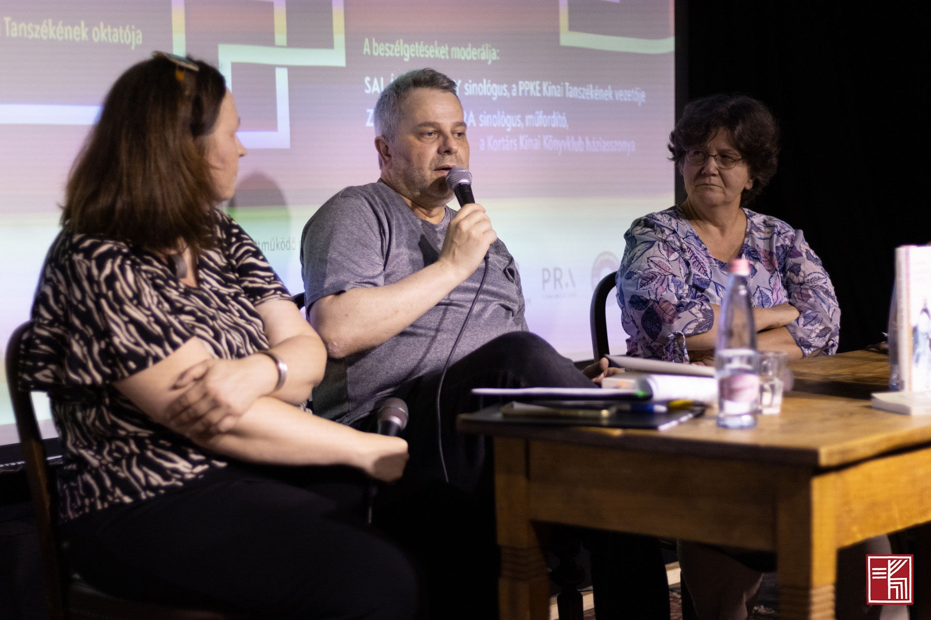活動(dòng)分為上下兩場,以“圓桌討論”形式舉行。上半場討論由俱樂部負(fù)責(zé)人、知名漢學(xué)家、翻譯家宗博莉·克拉拉女士(ZOMBORY Klára)主持,受邀嘉賓為羅蘭大學(xué)遠(yuǎn)東學(xué)院圖書館館長、漢學(xué)家馬約爾·柯爾奈莉奧女士(MAJOR Kornélia)和卡洛利·伽斯帕爾大學(xué)中文系講師、漢學(xué)家、翻譯家托考伊·若爾德(TOKAJI Zsolt)。下半場討論由帕茲馬尼·彼得大學(xué)中文系主任、漢學(xué)家邵萊特·蓋爾蓋伊(SALáT Gergely)主持,受邀嘉賓有文學(xué)翻譯本柯·費(fèi)倫茨(BENK? Ferenc)、中國和東亞問題學(xué)者、布達(dá)佩斯考文努斯大學(xué)博士生帕夫里切克·帕特利克(PAVLICSEK Patrik)和羅蘭大學(xué)中文專業(yè)學(xué)生佩萊·托馬什(PELLE Tamás)。