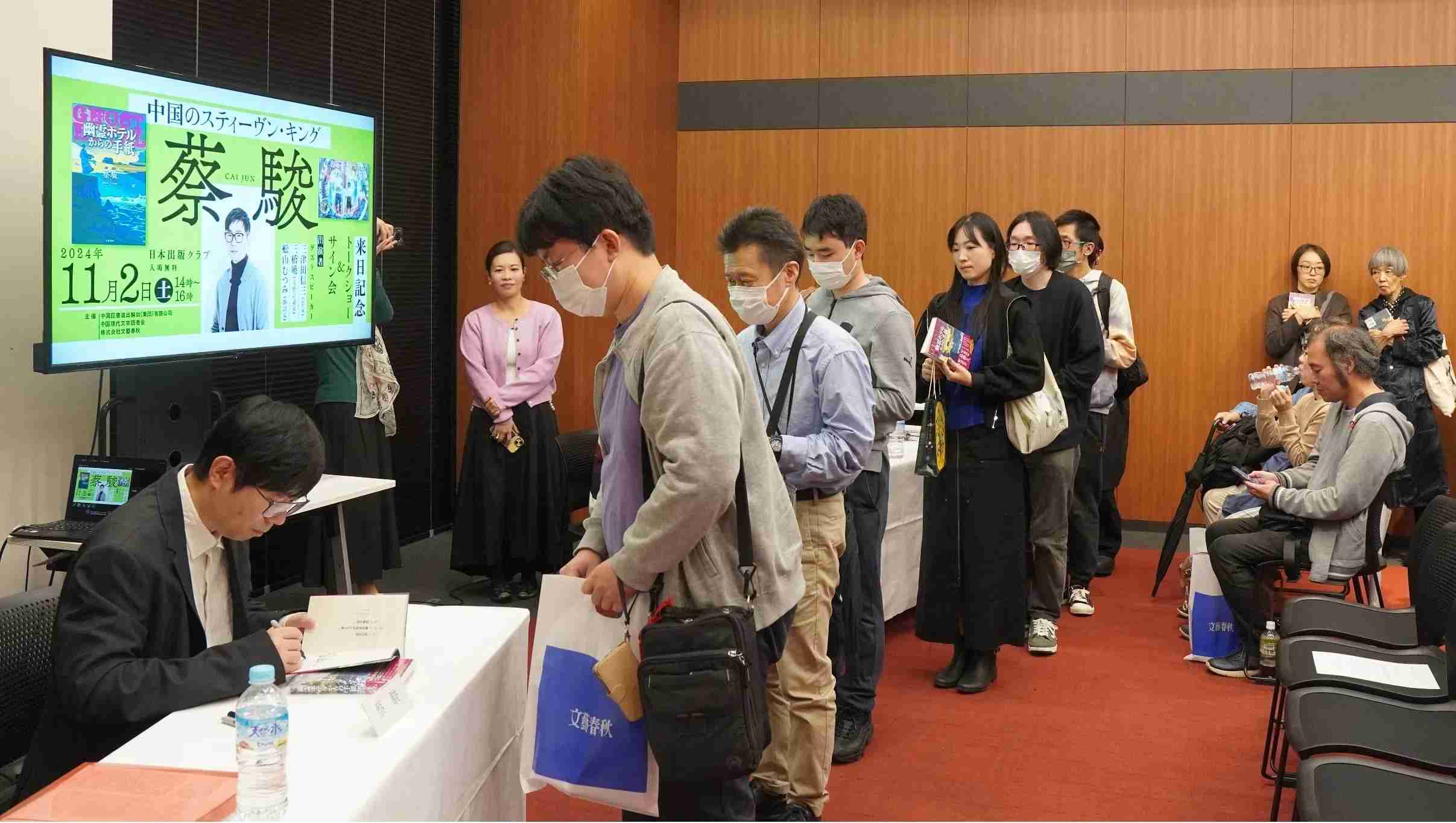 11月2日,由中國作家協(xié)會外聯(lián)部指導(dǎo),日本中國文學(xué)讀者俱樂部、日本文藝春秋出版社、中國圖書進(jìn)出口(集團(tuán))有限公司聯(lián)合主辦的蔡駿作品《幽靈客棧》日文版讀者交流會在日本東京出版俱樂部舉行。中國著名懸疑小說家蔡駿,《幽靈客棧》譯者、漢學(xué)家船山睦美女士,日本文藝春秋出版社日文編輯荒俁先生,日本著名文學(xué)評論家三津田信三先生、懸疑小說家三橋曉先生,日本中國文學(xué)讀者俱樂部策劃人楊亓瑋及日本多家媒體代表參加活動。現(xiàn)場座無虛席,近60位日本讀者與蔡駿面對面交流,氣氛十分熱烈。